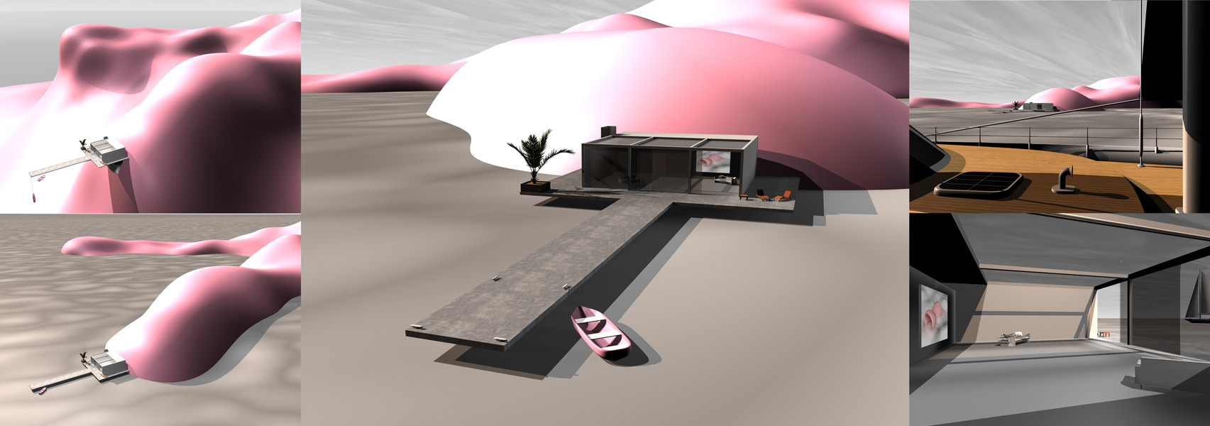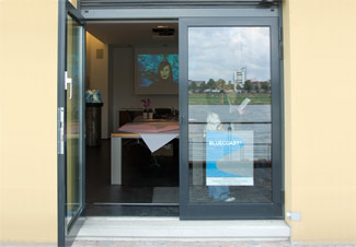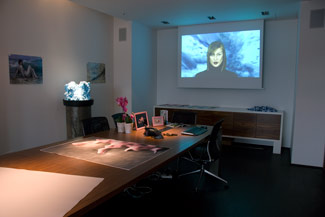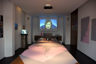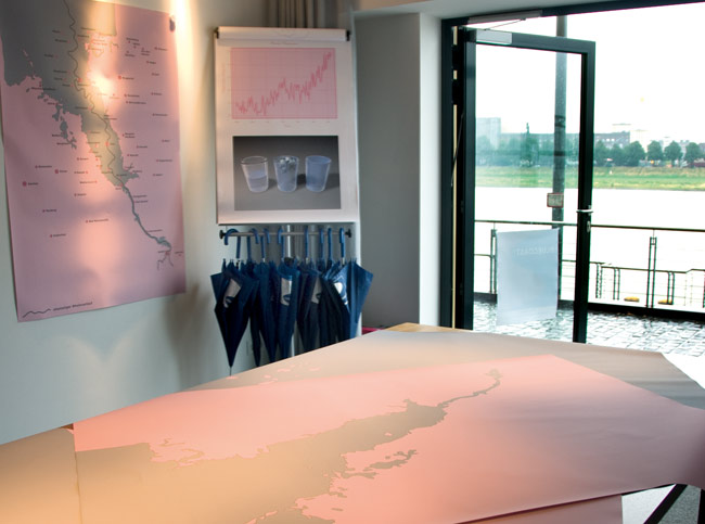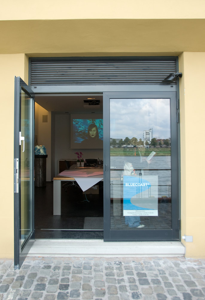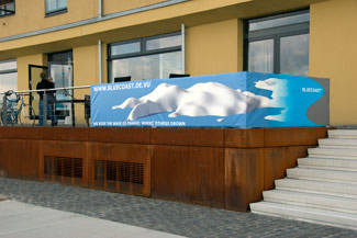 Oliver Kunkel’s imaginary company BLUECOAST intimates an idyllic landscape. According to expert calculations, we can expect a rise of the sea level of 70 meters due of the melting of both the polar caps and Greenland’s ice. The frightening results will be the flooding of large regions and the disappearance of whole countries, such as the Netherlands and Bangladesh (already by a sea-level increase of a seemingly insignificant 10 meters), or the Gaza Strip, one of the most densely populated regions on Earth. Dramatically large parts of Germany would disappear underwater with a 70-meter sea-level increase. All cities adjunctive to the Rhine would drown. The whole area on the river’s left bank would turn into a bay into which it would empty, near Koblenz. Except for some little islands, Berlin would be extinct. The metropolis of Hamburg would be hit first: Already at a sea-level increase of 15 meters it would be completely flooded. No one can say for sure when this will happen and what causes polar ice to melt: Is it us or is it the natural cycle of the recurrent ice age? But this is not really important for the point of Oliver Kunkel´s project. This work – like most of his works – does not want to educate; rather, it wants to analyze and offer metaphors that can be applied to other parts of life. Kunkel is more overarchingly interested in psychological issues than in specifically staged or imitative scenarios. For newtalents 2008, Oliver Kunkel was able to install the BLUECOAST OFFICE temporarily within the space of Pandion, a company that specializes in real estate project development. With this, the host company has displayed not only courage and self-confidence, but also significant open-mindedness. Without doubt Kunkel’s project is both provocative and polarizing. His sarcasm is not to be outdone; he offers real estate to solvent clients who want to take fiscal advantage of a looming global catastrophe. But his project is not that of a finger-waver warning us of global climate change. These kinds of appeals have indeed lost their effect on public perception. In July 2008, for example, major print media mentioned as an aside that the North Pole could be without ice for the first time ever this summer. Kunkel´s sarcasm is therefore much more drastic – but also humorous. In a comfortable office ambience he offers the opportunity of acquiring the fictitious real estate. The interested visitor is first fascinated, maybe laughs about the boat in one of the images that hangs over a dock, waiting for the coming water. But then this realisation turns nightmarish. The combination of climate catastrophe and the global sell-off is exhilarating in an absurd kind of way. Oliver Kunkel understands brilliantly how to visualize his ideas, and to offer the viewer an extremely complex experience. |